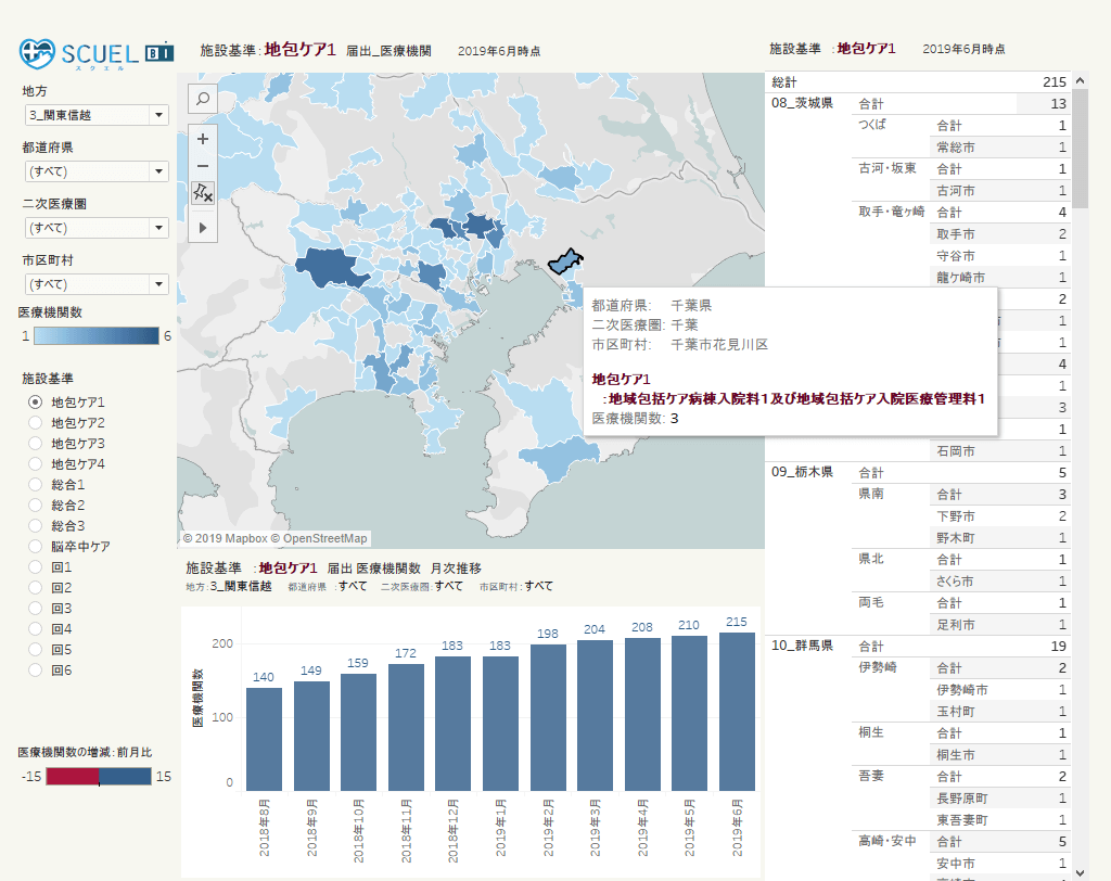 ミーカンパニー株式会社は、2010年設立以来、医療機関・薬局・介護データベース「SCUEL®(スクエル)データベース」を構築。 このたび、この高鮮度で精緻なデータベースの一部をBIツールで可視化。