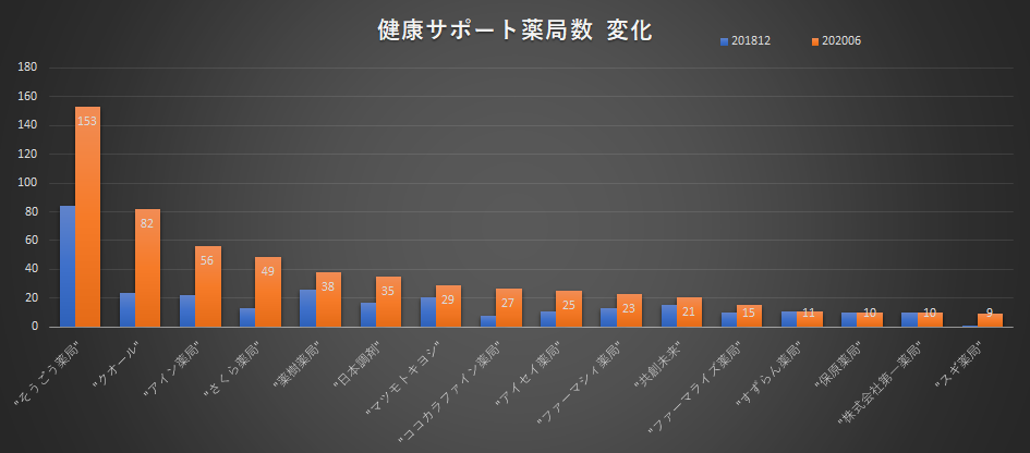 (弊社が収集した「健康サポート薬局」2018年12月との比較)